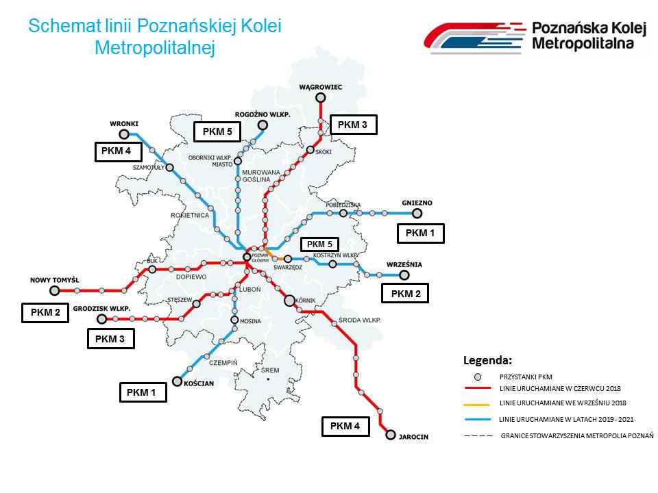 Poznańska Kolej Metropolitalna to system regularnych kolejowych połączeń regionalnych oparty na zasadzie solidaryzmu wszystkich samorządów współuczestniczących w projekcie. Przedsięwzięcie jest współfinansowane przez Samorząd Województwa Wielkopolskiego, Miasto Poznań, Powiat Poznański oraz położone wzdłuż 9 linii kolejowych Poznańskiego Węzła Kolejowego gminy i powiaty aglomeracji poznańskiej. W godzinach szczytu przewozowego pociągi w systemie PKM będą kursować z częstotliwością co 30 minut, zapewniając pasażerom odpowiedni komfort podróżowania.
