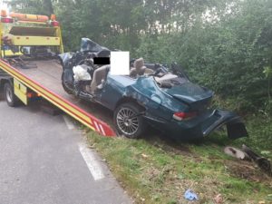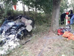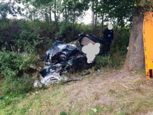Na prostym odcinku drogi, podczas manewru wyprzedzania, 19-letni kierowca hondy prelude utracił panowanie nad kierownicą. Samochód zjechał na lewe pobocze i z impetem uderzył w drzewo.