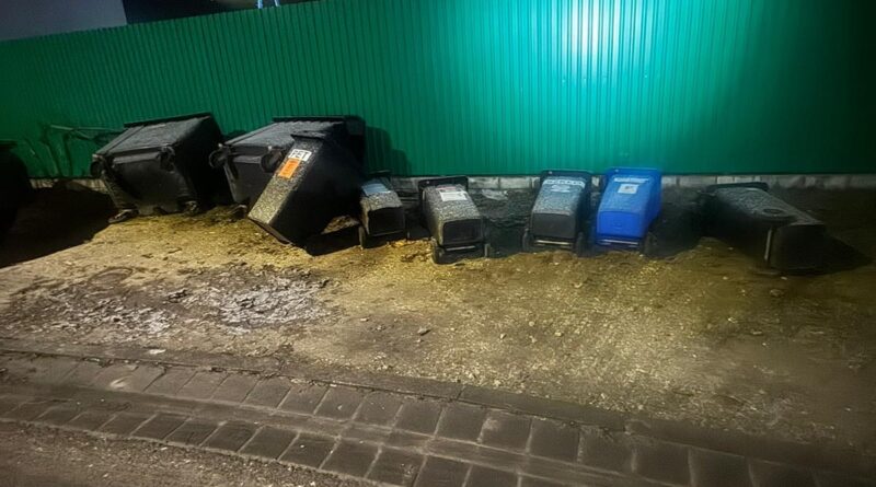 Gdy mundurowi sprawdzali kolejne miejsca, w rejonie ul. Nieznanego Żołnierza, zauważyli wywrócone pojemniki na śmieci oraz rozsypane nieczystości. Pracownicy z pobliskiej stacji paliw, wskazali, że pojemniki na odpady poprzewracał mężczyzna w wieku około 20 lat, który wcześniej jednym z pojemników rzucił w kierunku stacji po tym jak odmówiono mu sprzedaży alkoholu, którego się domagał.