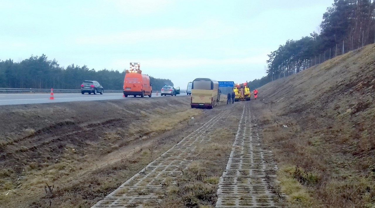 AUTOKAR Z UKRAINY W ROWIE NA AUTOSTRADZIE A2, ALE SZCZĘŚLIWIE