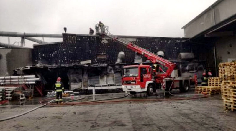 Bardzo groźny pożar w zakładzie produkcji mebli ! Straty wstępnie oszacowano na pół miliona złotych .