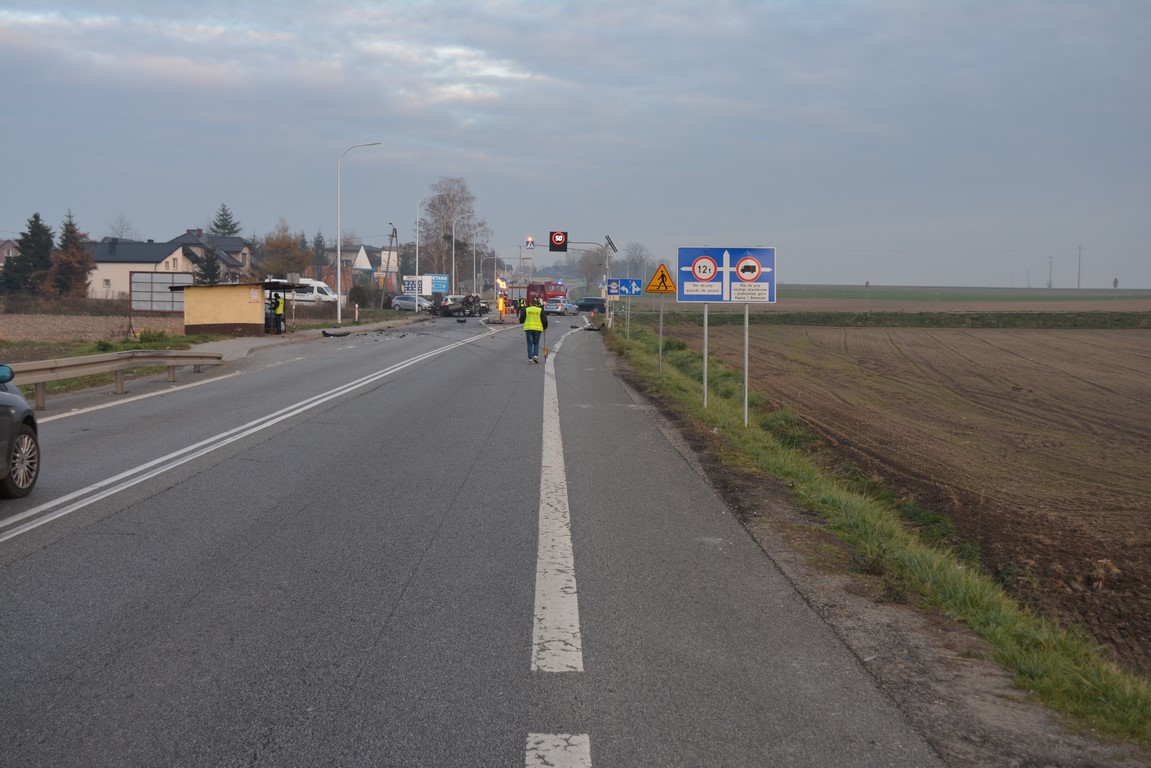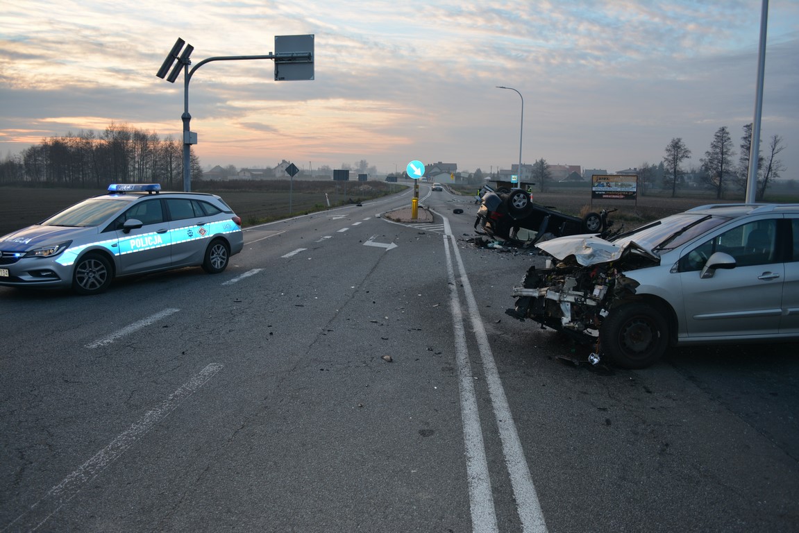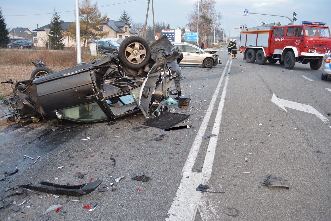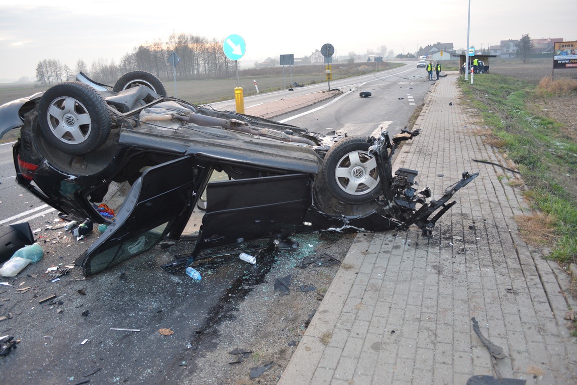 Bardzo groźny wypadek na łuku drogi krajowej. Trzy osoby trafiły do szpitala