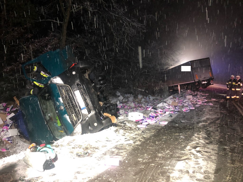 W dniu 07.01.2021roku o godz. 2.40 Dyżurny Operacyjny Stanowiska Kierowania otrzymał zgłoszenie o wypadku samochodu ciężarowego z samochodem dostawczym na drodze nr 443 w miejscowości Lubinia Mała.