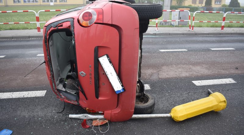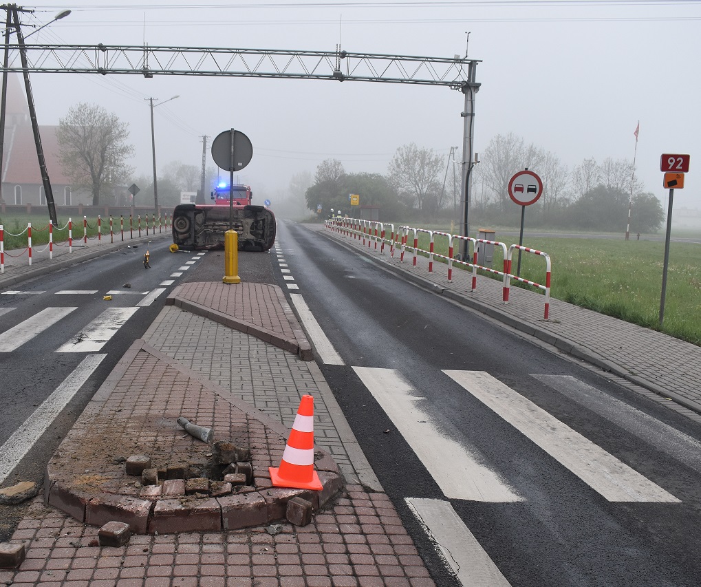 Dyżurny Komendy Powiatowej Policji we Wrześni 5 maja br. o godzinie 4:50 odebrał zgłoszenie o zdarzeniu drogowym w Węgierkach przy skrzyżowaniu ulic Wrzesińska a Kasztanowa. Z podanej informacji wynikało, że pojazd po uderzeniu w barierki znajduje się na lewym boku.