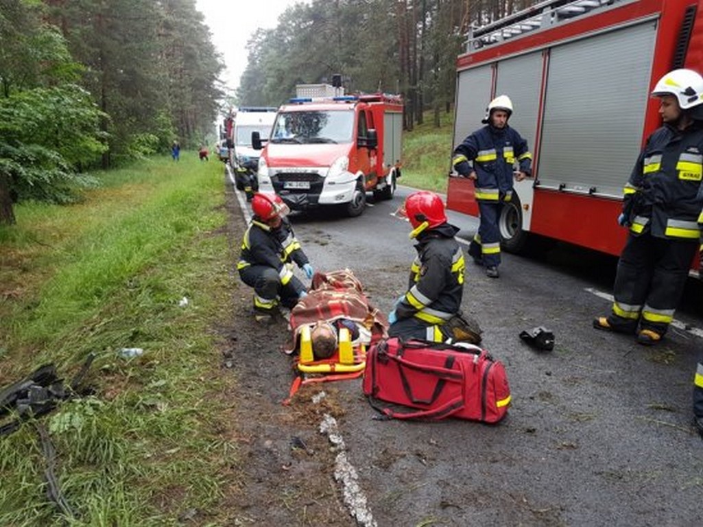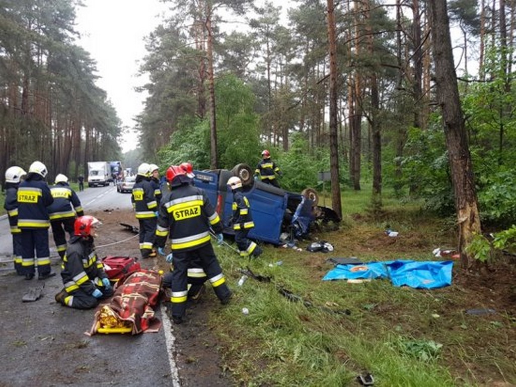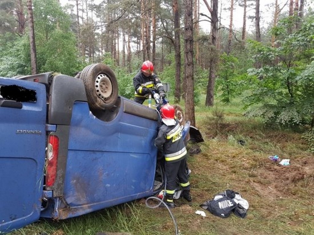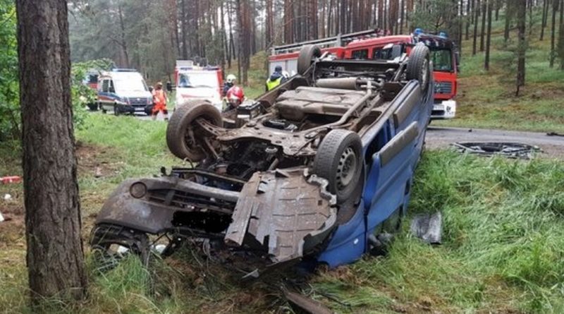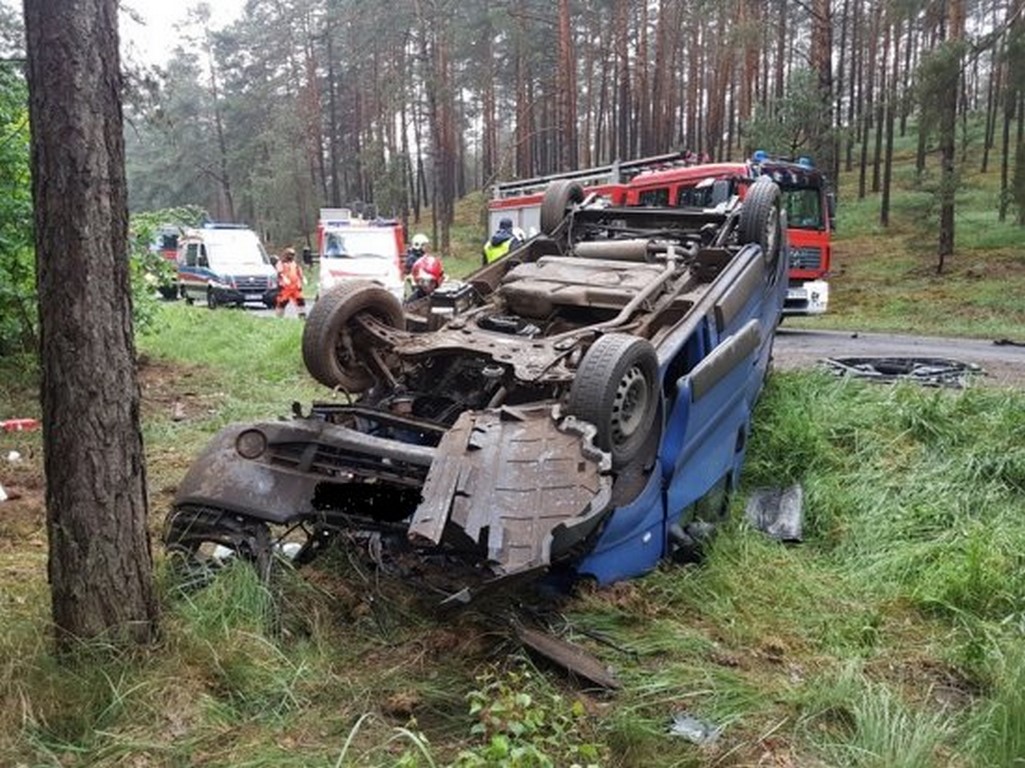 Bardzo niebezpieczne dachowanie busa. Poszkodowane osoby przewiezione do szpitali w Nowym Tomyślu i Wolsztynie.