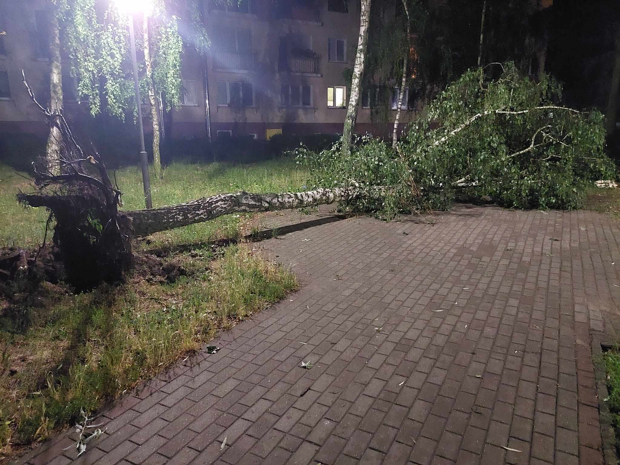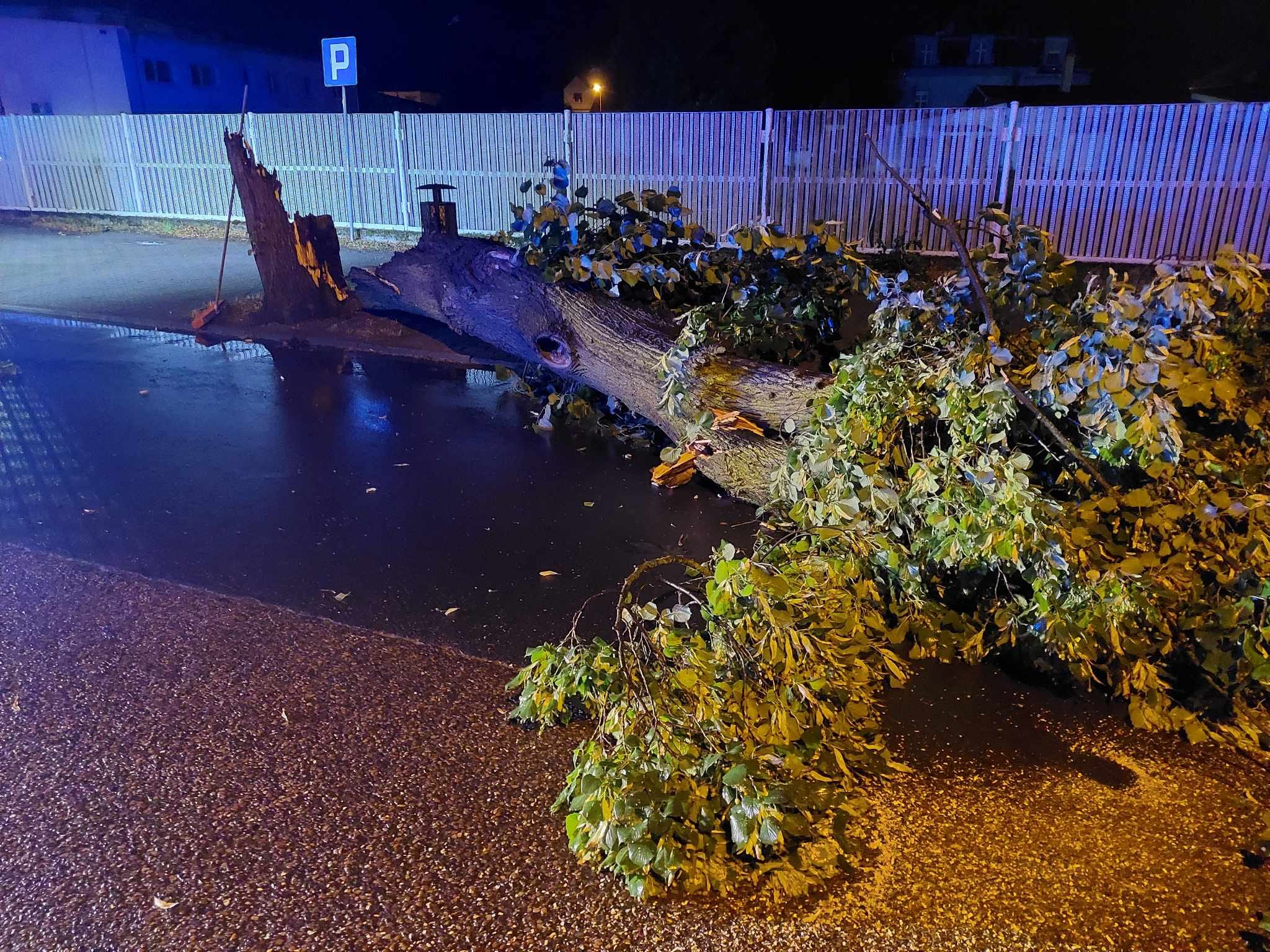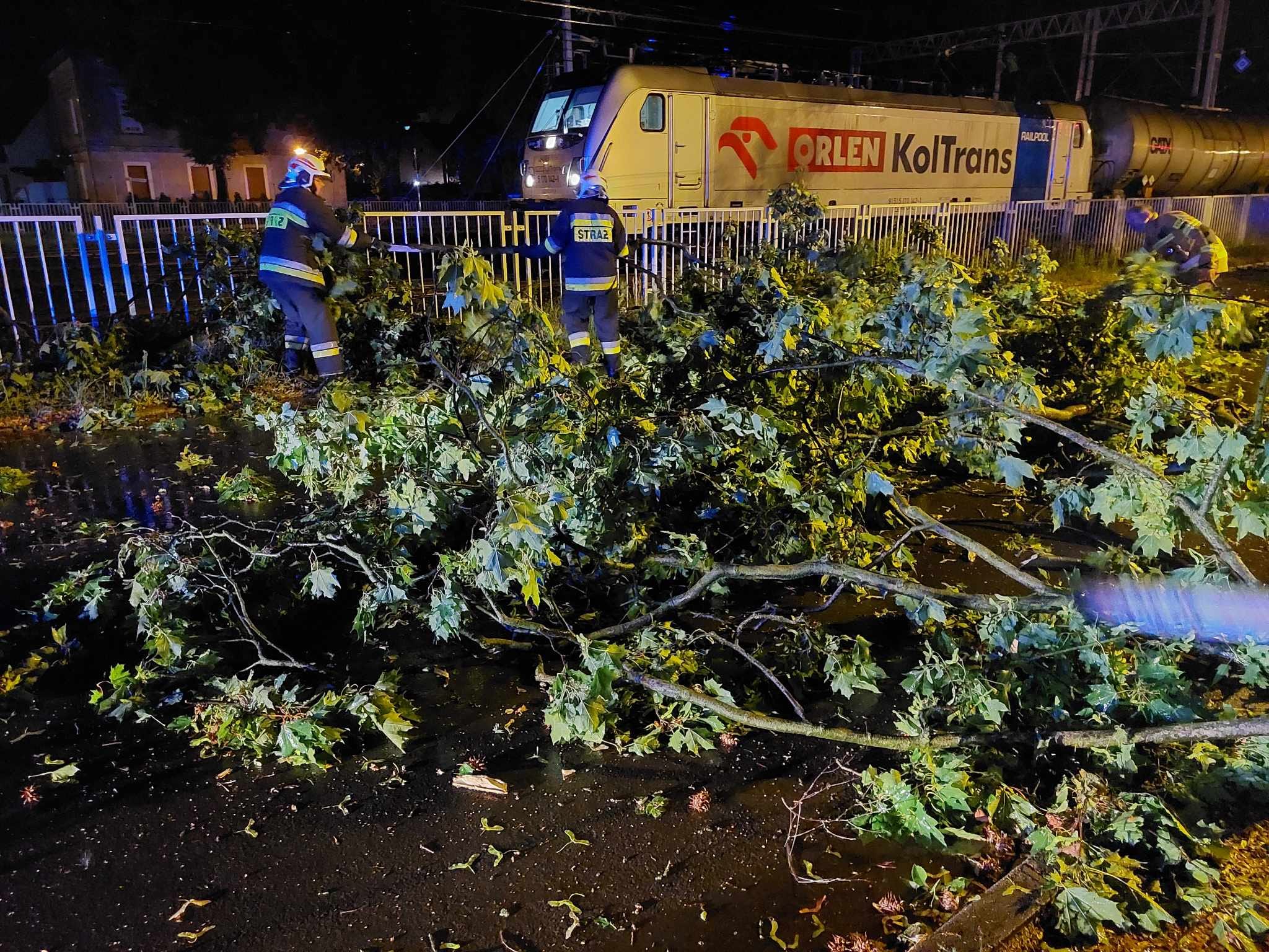 Działania SP polegały między innymi na zabezpieczeniu miejsca zdarzenia, oświetleniu terenu działań, usuwanie połamanych drzew i konarów z drogi oraz usunięciu drzewa z budynków.