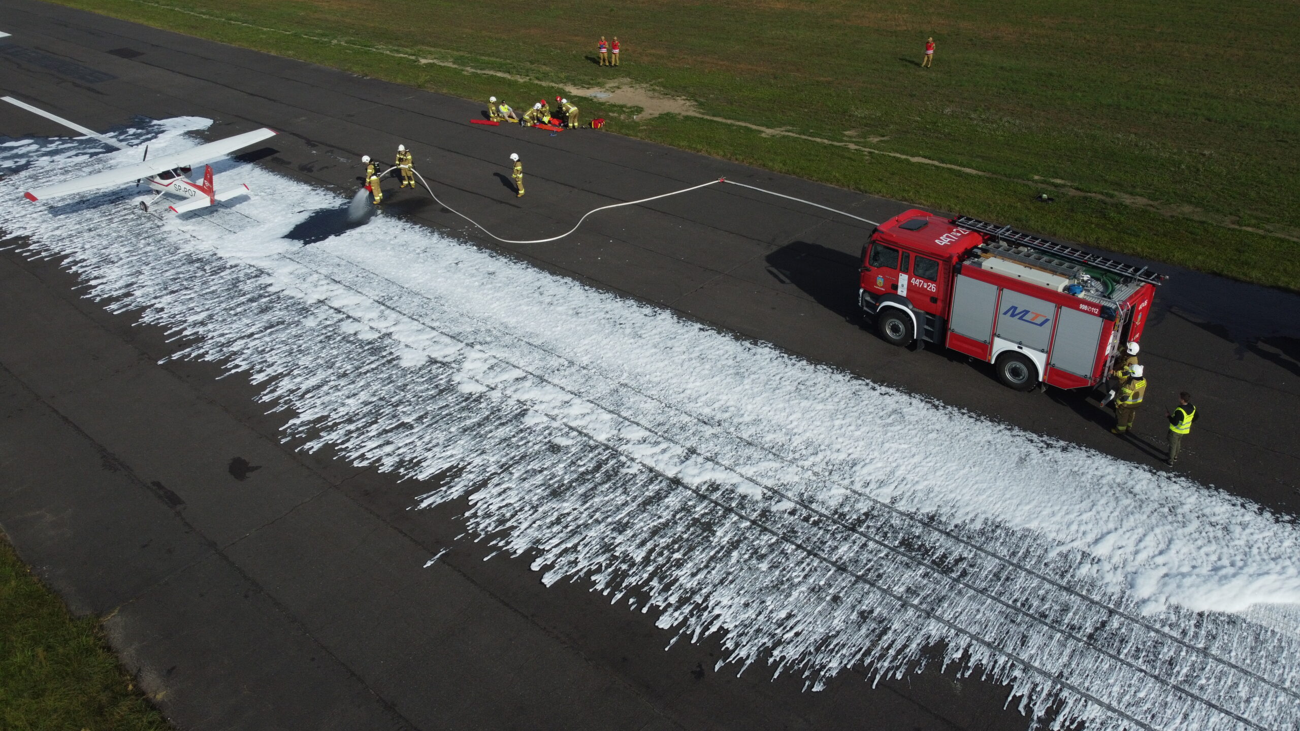 Był to wstęp do wspólnych ćwiczeń załogi lotniska, straży pożarnej, policji, zespołów ratownictwa medycznego.