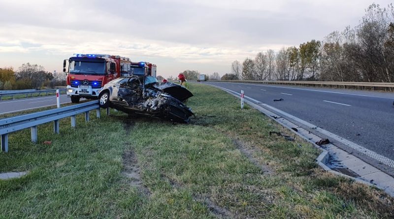 Informacja o zdarzeniu drogowym na 104 kilometrze S5 wpłynęła do Komendy Powiatowej PSP w Rawiczu w sobotę 30 października 2021 r. o godz. 15.45.