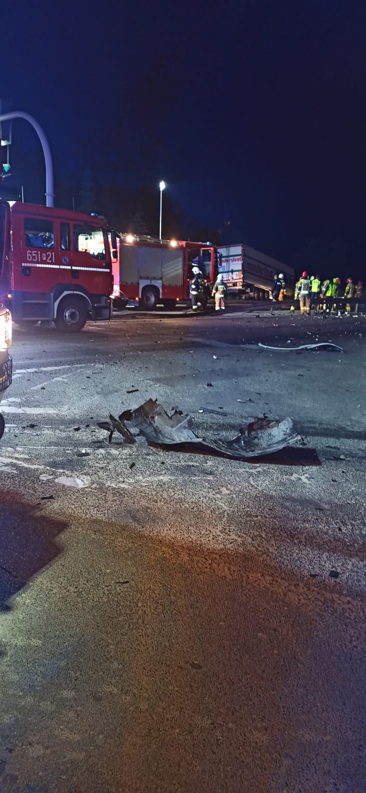 W trakcie prowadzonych działań ruch na DK 92 był zablokowany. Usunięto zwisające elementy sygnalizacji świetlnej oraz wystające na jezdnię barierki energochłonne.
