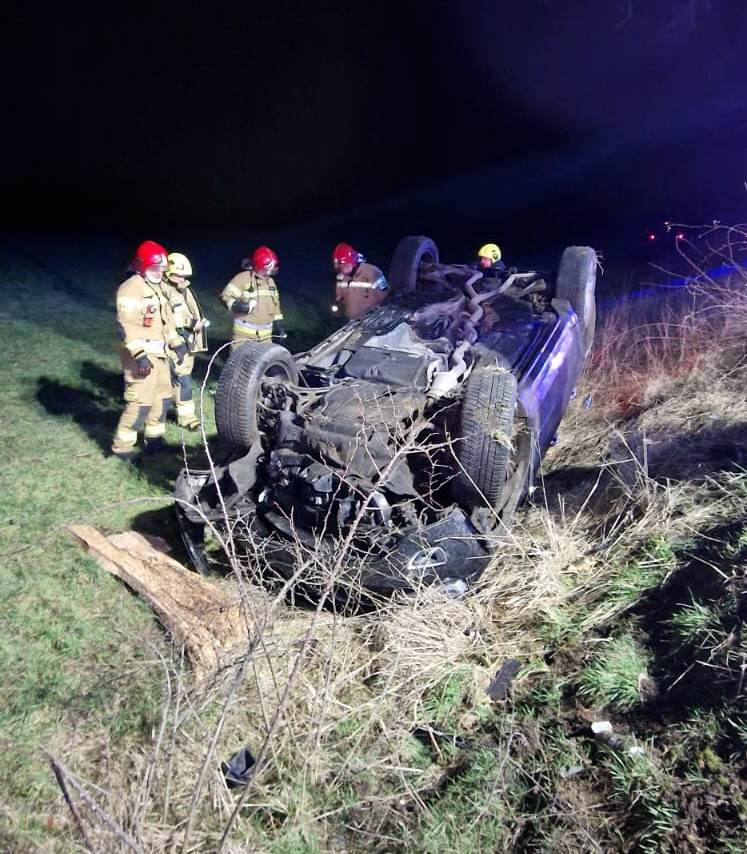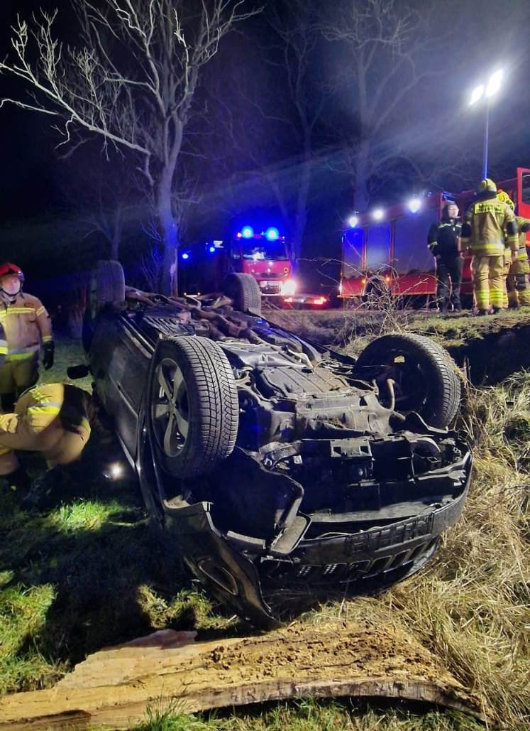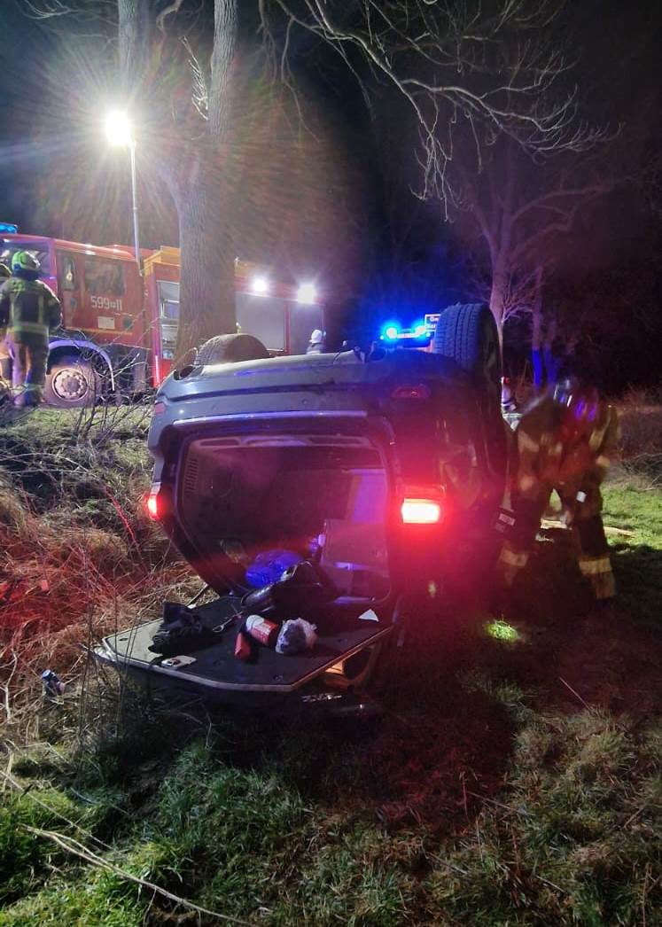 W sobotę, 11 marca o godz. 18.45 do dyżurnego Stanowiska Kierowania Państwowej Straży Pożarnej w Szamotułach wpłynęło zgłoszenie z Centrum Powiadamiania Ratunkowego, które informowało o dachowaniu samochodu osobowego i jednej osobie poszkodowanej w miejscowości Radzyny gm. Kaźmierz.