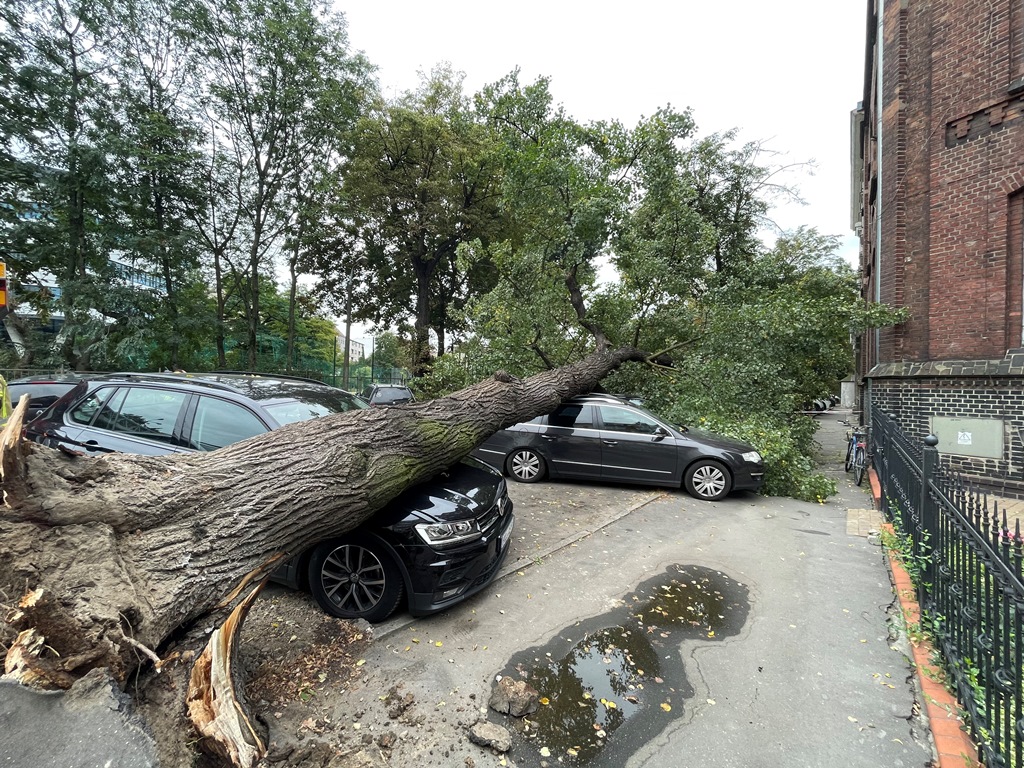 DRZEWO PRZEWRÓCONE NA SAMOCHODY