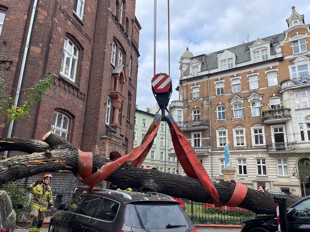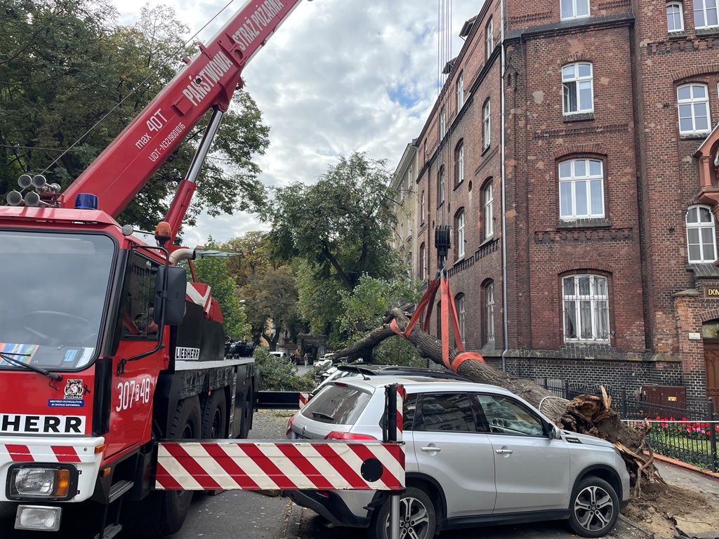 Po przybyciu na miejsce zdarzenia pierwszego podmiotu ratowniczego stwierdzono, że drzewo przygniotło i uszkodziło 4 samochody osobowe zaparkowane na prywatnym parkingu. Działania strażaków polegały na zabezpieczeniu miejsca zdarzenia oraz wypracowaniu taktyki i techniki działań w odniesieniu do zastanej sytuacji.