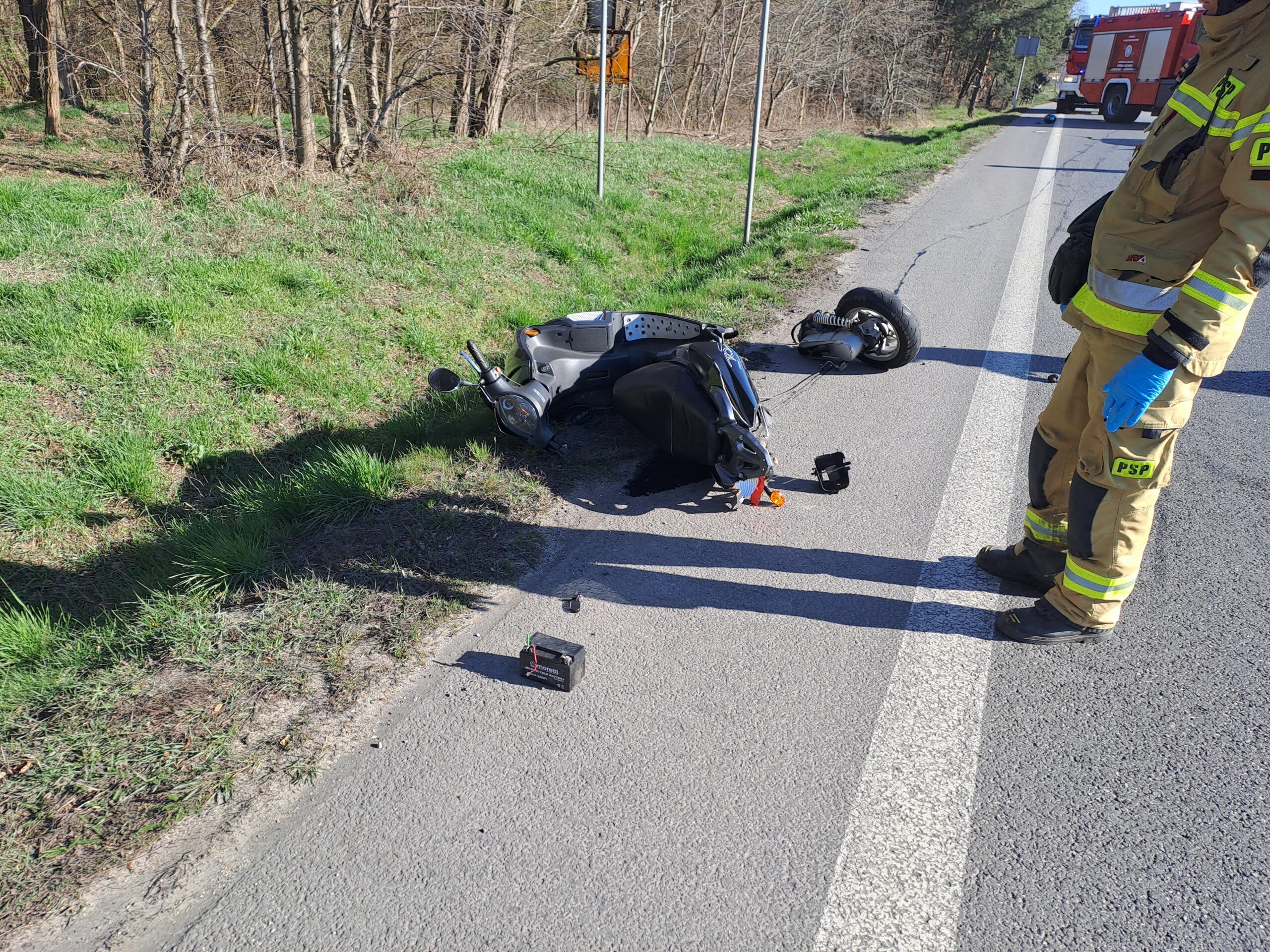 Zgłoszenie o pierwszym zdarzeniu wpłynęło do Stanowiska Kierowania Komendanta Miejskiego PSP w Koninie po godz. 9.00. Na drodze krajowej nr 25 w miejscowości Stare Miasto doszło do zderzenia samochodu osobowego z motorowerem. Kierujący samochodem osobowym nie odniósł obrażeń, natomiast poszkodowany mężczyzna podróżujący motorowerem leżał na jezdni. Ruch w kierunku Kalisza został zablokowany. Działania strażaków polegały na udzieleniu kwalifikowanej pierwszej pomocy poszkodowanemu mężczyźnie, który następnie został przetransportowany przez Zespół Ratownictwa Medycznego do szpitala. W zdarzeniu brali udział strażacy z Jednostki Ratowniczo-Gaśniczej Nr 2 w Koninie oraz druhowie z OSP Stare Miasto.