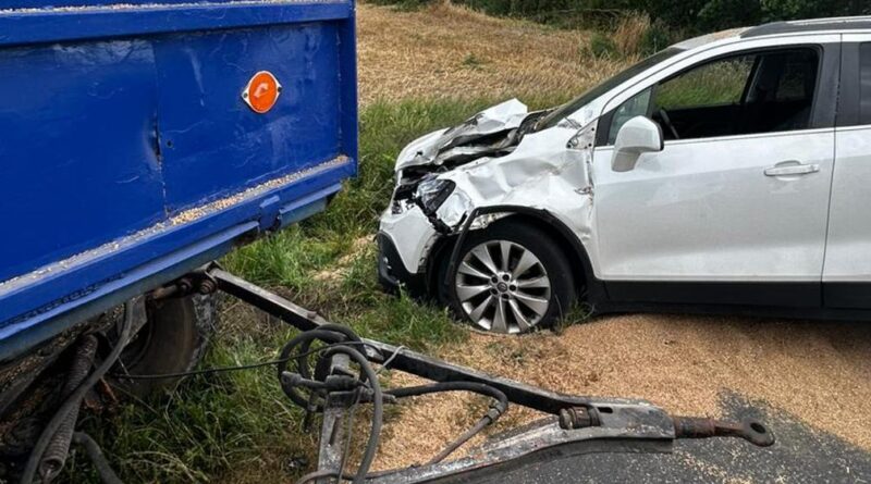 W okolicach Pawłowa Żońskiego na drodze wojewódzkiej nr 190 samochód osobowy uderzył w przyczepę rolniczą, która odczepiła się od zestawu składającego się z ciągnika rolniczego i dwóch przyczep. Na miejsce zadysponowana została najbliższa miejscu zdarzenia OSP oraz jeden zastęp strażaków z JRG w Wągrowcu. Po przyjeździe zastano uszkodzony przód pojazdu osobowego marki Opel oraz zestaw pojazdów rolniczych. Na szczęście nikt w tym zdarzeniu nie odniósł obrażeń.