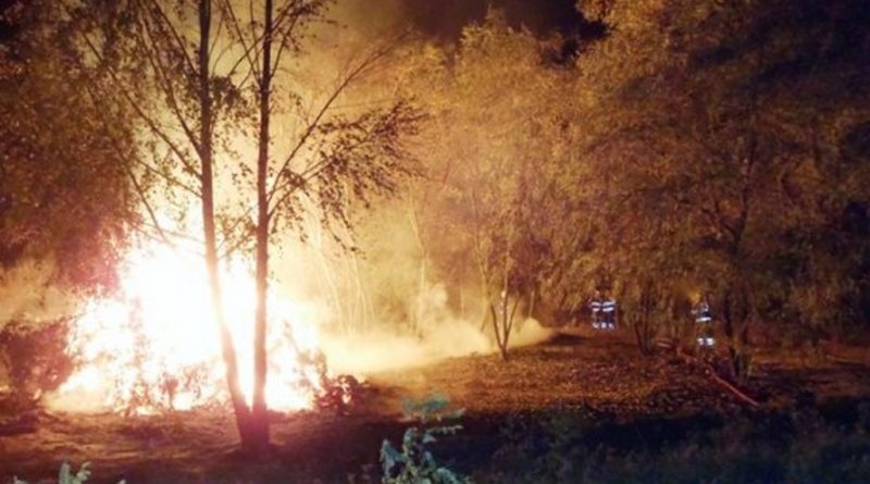w całości objęty ogniem. Zabezpieczyli miejsce pożaru oraz podali prądy wody na palący się stóg. Po opanowaniu pożaru przy użyciu wideł rozepchnięto stóg a następnie przelano pogorzelisko wodą. Na miejscu pracowało 5 zastępów straży pożarnej, a spaleniu uległo około 400 balotów słomy.