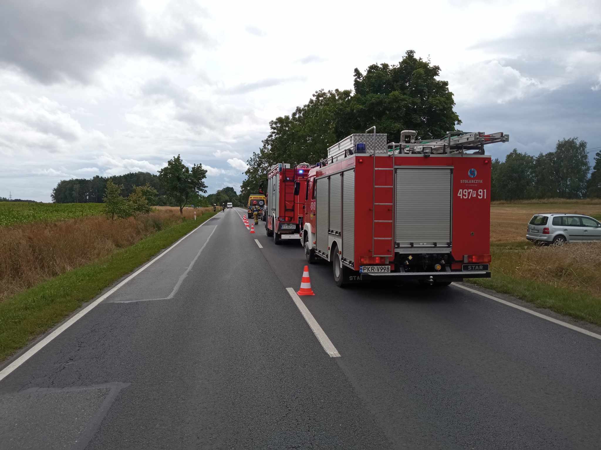 O godzinie 11:54 do Stanowiska Kierowania Komendanta Powiatowego PSP w Krotoszynie wpłynęło zgłoszenie o zdarzeniu drogowym w m. Koźmin Wielkopolskim. Na skrzyżowaniu drogi krajowej z drogą powiatową doszło do zderzenia dwóch samochodów osobowych. W wyniku wypadku dwie osoby odniosły obrażenia wymagające dalszej hospitalizacji. Tuż przed godziną 15 kolejny raz jednostki ochrony przeciwpożarowej interweniowały na krajowej 15. Tym razem na wysokości miejscowości Konarzew (gm. Zduny) pojazd osobowy najechał na tym samochodu poprzedzającego. W wyniku tego zdarzenia jedna osoba wymagała interwencji służb medycznych i została przetransportowana do placówki medycznej.