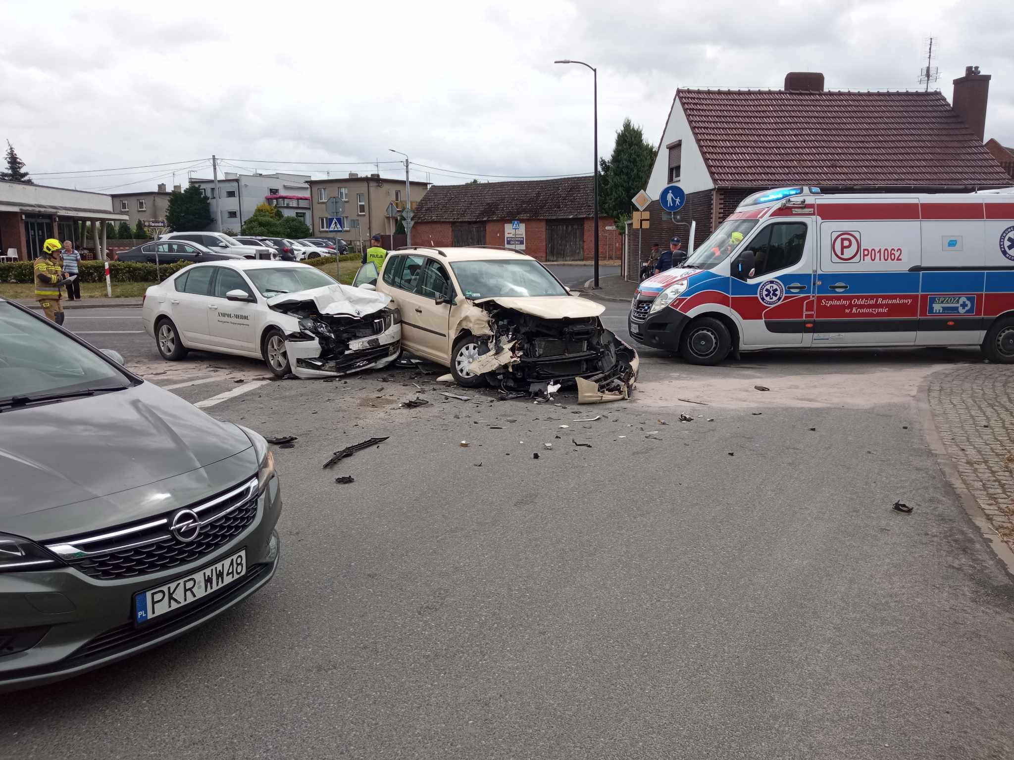 W obu przypadkach strażacy do momentu przybycia zespołu ratownictwa medycznego udzielili kwalifikowanej pierwszej pomocy osobom poszkodowanym. Łącznie trzech uczestników zgłaszających drobne urazy po diagnostyce w karetce pogotowia trafiło do placówek medycznych. Uszkodzone w wyniku wypadków komunikacyjnych pojazdy blokowały część drogi krajowej stąd długotrwałe utrudnienia w ruchu. Po zakończeniu czynności dochodzeniowych realizowanych przez funkcjonariuszy Policji w przypadku interwencji w Koźminie Wielkopolskim jeden z pojazdów został zabrany przez pomoc drogową, natomiast drugi przemieszczono na pobocze bocznej drogi dojazdowej. Celem przywrócenia ruchu całą szerokością jezdni z nawierzchni usunięto dużą ilość elementów karoserii samochodowej oraz wycieki płynów eksploatacyjnych. W przypadku drugiego zdarzenia komunikacyjnego uszkodzenia pojazdów nie wymagały interwencji jednostek ochrony przeciwpożarowej, dlatego zostały przemieszone przez właścicieli na drogę dojazdową do posesji. Łącznie utrudnienia w ruchu trwały ponad dwie godziny a w działania zaangażowano 4 zastępy straży pożarnej i 20 strażaków.