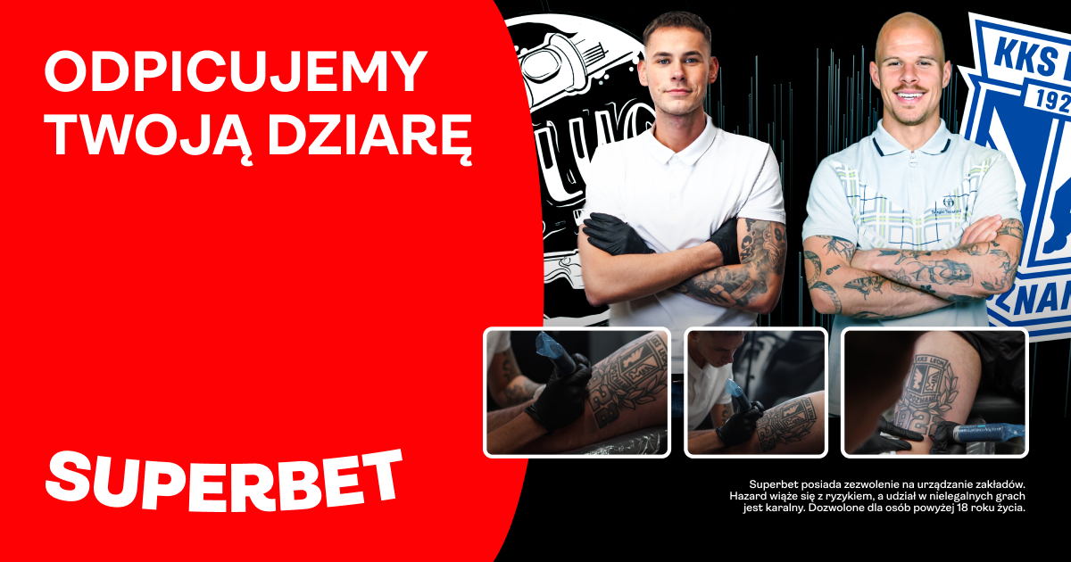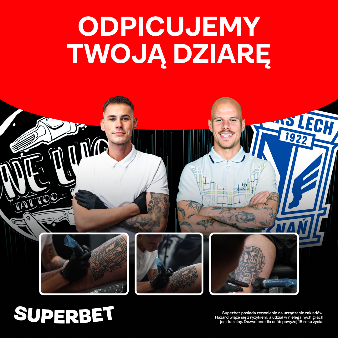 Takiej akcji jeszcze nie było! Superbet – sponsor strategiczny Lecha Poznań, Klub oraz Stowarzyszenie Kibiców Kolejorz zupełnie za darmo „naprawią” – we współpracy ze Studiem OneLuck – tatuaże, których posiadacze marzą o zmianie. Akcja skierowana jest do sympatyków Kolejorza. – Niektóre wzory z czasem blakną dosłownie i w przenośni. Wspólnie damy im w prezencie świątecznym nowy blask – uśmiecha się CEO Superbet Polska, Łukasz Seweryniak.