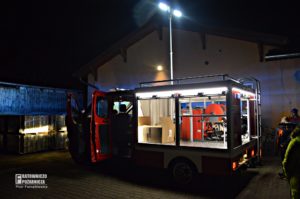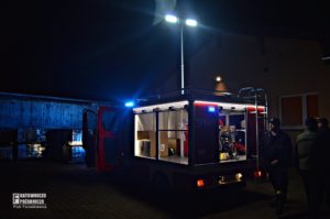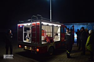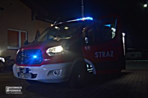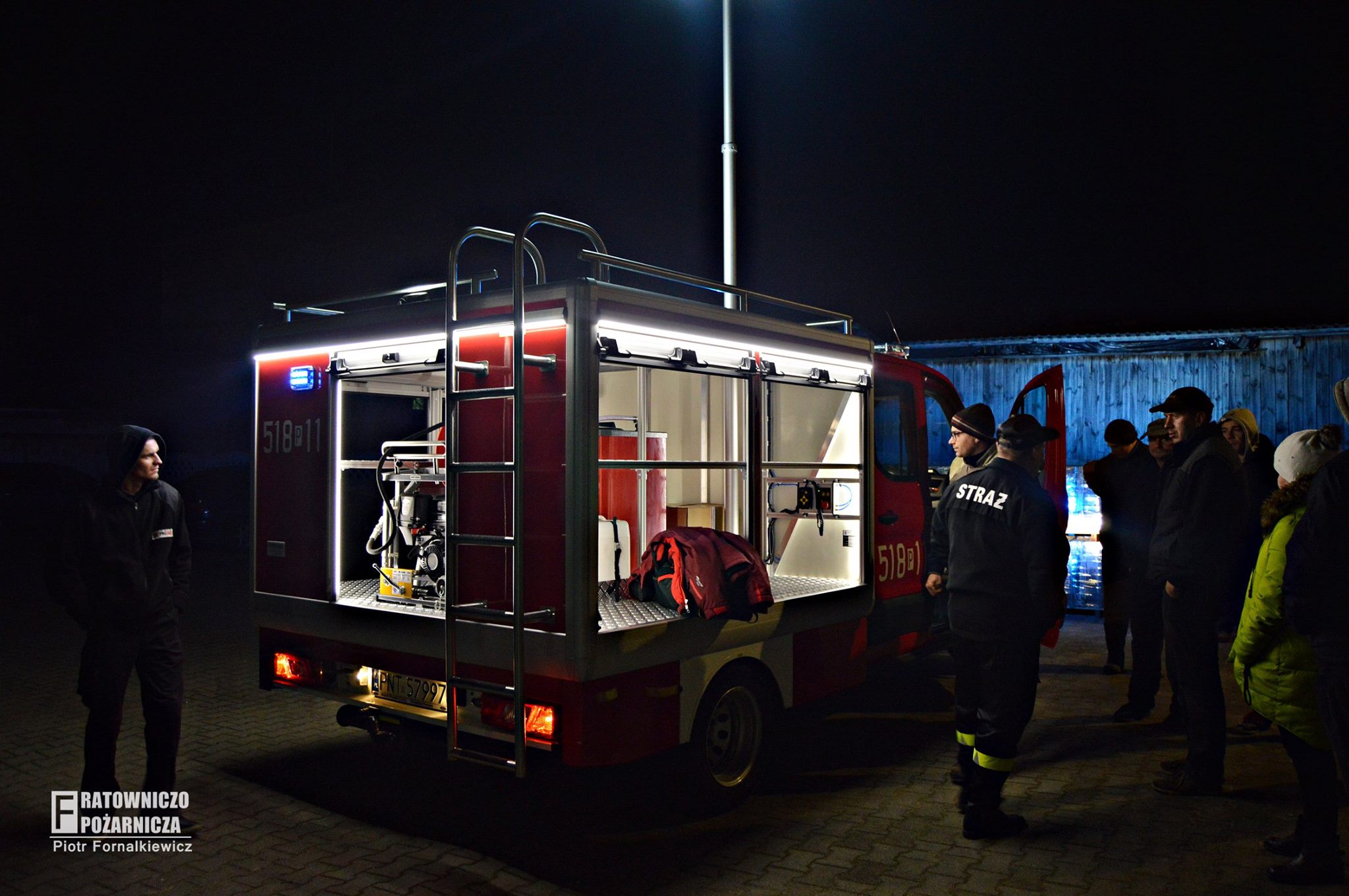 Ford Transit zabudowany przez firmę Frank-Cars z Częstochowy, wyposażony w zbiornik wody o pojemności 200 litrów, agregat wysokociśnieniowy wodno-pianowy o wydajności pompy min 50 l/min – przy ciśnieniu min 40 bar, maszt oświetleniowy wyposażony w 2 reflektory LED 30W o wysokości po rozłożeniu od poziomu dachu do reflektora 2,5m oraz wyciągarkę elektryczną wbudowana w zderzak z prowadnicą rolkową o uciągu min. 3,5t /piter