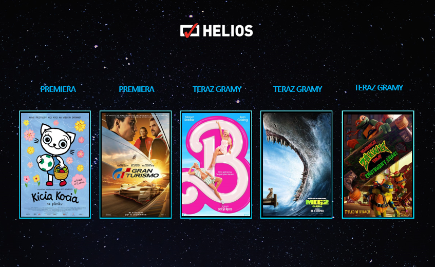 W repertuarze znajdą się także kinowe hity tego roku, na czele z „Barbie”. Jeśli ktoś nie widział jeszcze największego blockbustera ostatnich miesięcy, Helios zaprasza do tego, by to nadrobić! Uwzględniając potrzeby widzów ukraińskojęzycznych, film zostanie zaprezentowany również w języku ukraińskim. Na ekranach kolejny hit wakacji – „Oppenheimer”.W wybranych kinach fani kina będą mogli ten film zobaczyć także w języku ukraińskim. Miłośnikom mocnych wrażeń spodoba się „MEG 2: Głębia” – megaprodukcja o walce z zabójczymi rekinami. Natomiast dzieci i nie tylko Helios zaprasza na animację „MAVKA i Strażnicy Lasu”, opowiadającą o przygodach młodej czarodziejki W części kin ukraińskojęzyczni kinomani będą mogli obejrzeć film w wersji oryginalnej.