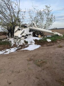 Obecni na miejscu strażacy zabezpieczyli zdarzenie, podali również pianę na wrak samolotu.