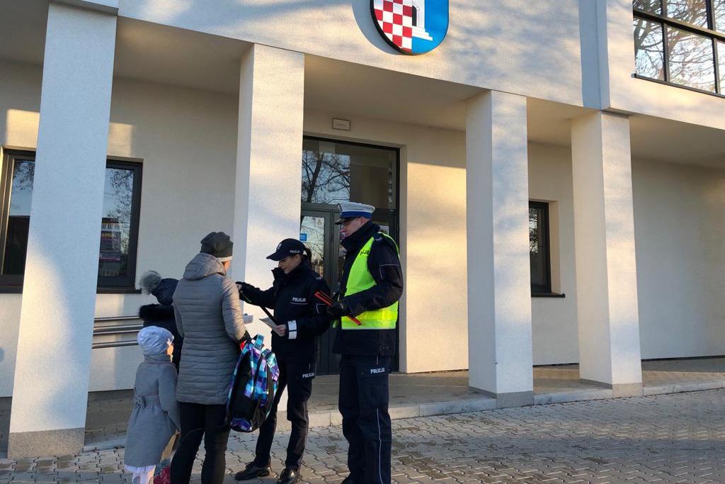 Mundurowi z prewencji i drogówki pojawili się w piątek 22 lutego przy szkole podstawowej w Golinie. Rozmawiali z kierowcami i pasażerami o bezpieczeństwie.