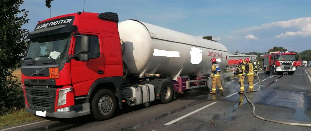 W miejscowości Granowo kierowca zauważył, że dymi się z jednego z kół. Zgłosił zdarzenie na nr alarmowy i w ustaleniu ze służbami wyjechał cysterną w bardziej bezpieczne miejsce na drodze krajowej. Dyżurny zadysponował do zdarzenia zastępy z JRG Grodzisk Wlkp. i OSP Granowo. Po dojeździe na miejsce, wyznaczono strefę bezpieczną, ugaszono palącą się oponę oraz chłodzono cysternę. Cysterna przewoziła 20 t gazu propan butan. Opanowanie kierowcy pozwoliło uniknąć tragedii. Droga krajowa była całkowicie zablokowana. Akcja trwała ponad 4 godz.