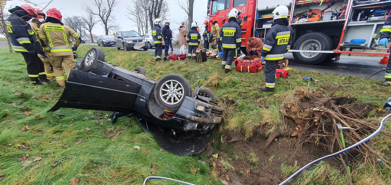 W pojeździe oprócz kierowcy, którego przetransportowano śmigłowcem LPR do szpitala w Kaliszu, znajdowało się dwóch pasażerów, tj. 40-letnia kobieta i 33-letni mężczyzna (ob. Mołdawii zam. Mikstat), którzy zostali przewiezieni do szpitala w Ostrowie Wlkp.