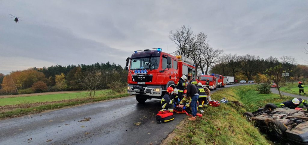 Groźne dachowanie BMW! Obywatel Mołdawii trafili do szpitala. W akcji śmigłowiec LPR