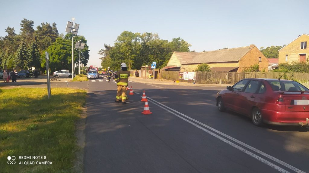 Dwaj mieszkańcy gminy Jutrosin zostali poszkodowani w wyniku zderzenia motocykla z rowerem. Jeden z nich to strażak jadący do służby. Do kraksy doszło w Borku.