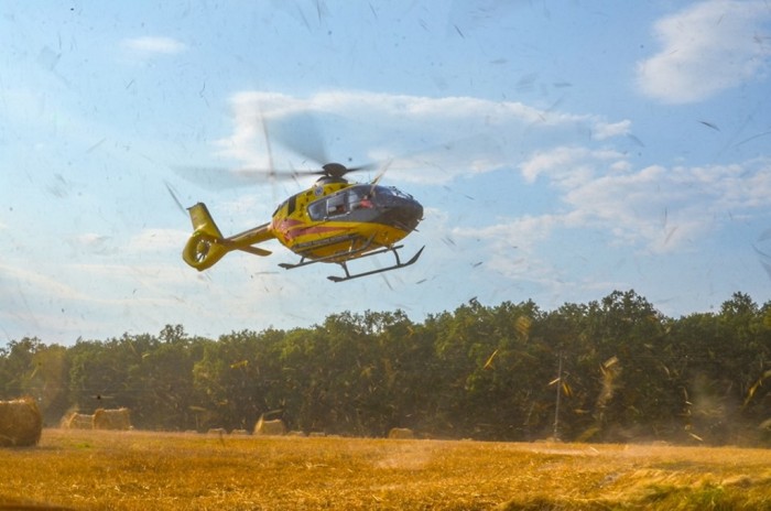 Groźny wypadek kabrioletu. Trzy osoby trafiły do szpitala po dachowaniu auta. Na miejscu śmigłowiec LPR