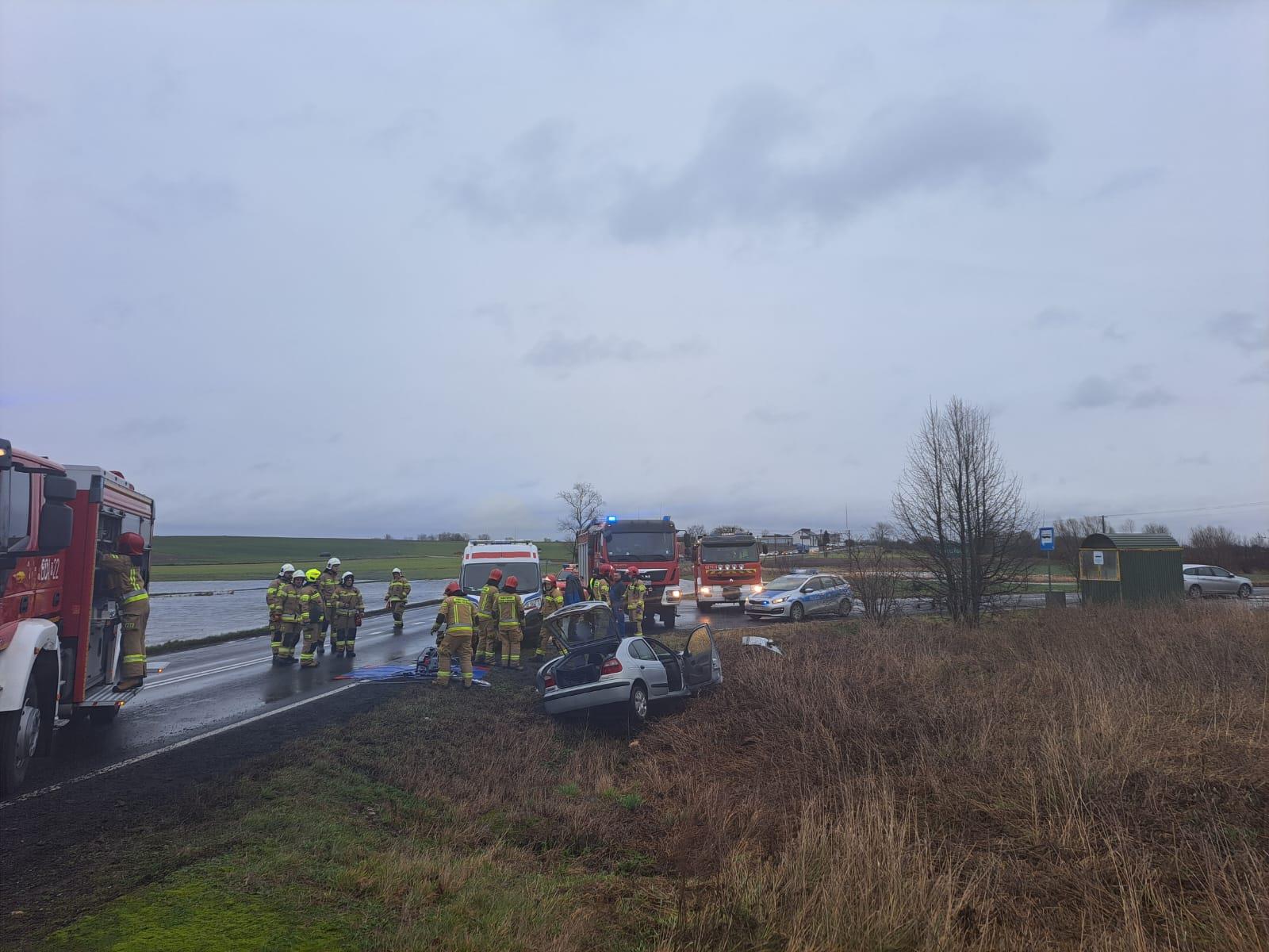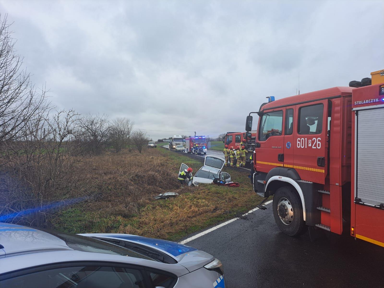 Wypadek i uwięziona we wraku osoba na DW 310 w m. Pucołowo.