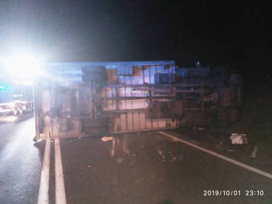 We wtorek 01.10.2019 około godziny 21:48 do SKKP wpłynęło zgłoszenie o wypadku samochodu dostawczego przewożącego bydło na drodze krajowej nr 11 w miejscowości Piaski.