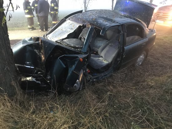 Po dojeździe okazało się, że kierująca pojazdem w bardzo trudnych warunkach atmosferycznych, straciła panowanie nad pojazdem i uderzyła w przydrożne drzewo. Siła uderzenia była tak duża, że strażacy musieli użyć sprzętu hydraulicznego, żeby ją wydostać z pojazdu. Udzielili jej KPP oraz przekazali ratownictwu medycznemu, które zabrało kobietę do szpitala.