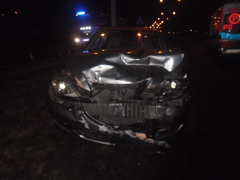 W wyniku zderzenia mazda przemieściła się na pas zieleni. Na miejscu czynności wykonywali policjanci wydziału ruchu drogowego, którzy wyczuli wyraźną woń alkoholu od kierującej mazdą.