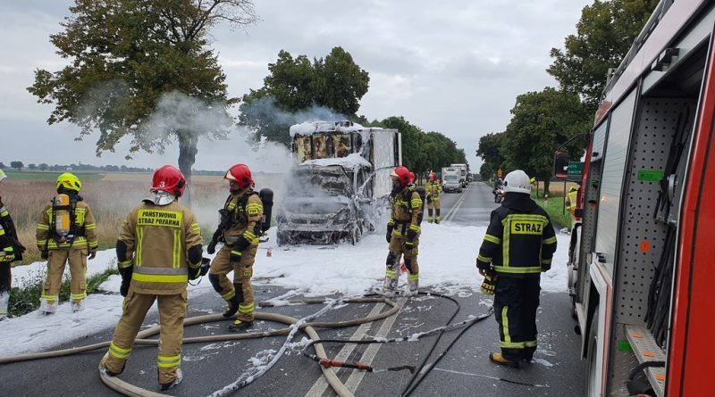 Samochód dostawczy typu izoterma przewożący pieczywo nagle stanął w płomieniach. Kierujący opuścił pojazd o własnych siłach i próbował ugasić pożar za pomocą gaśnicy. Na miejsce zdarzenia zadysponowano trzy zastępy z JRG Środa Wielkopolska oraz OSP Brodowo. Strażacy po przyjeździe na miejsce zdarzenia natychmiast przystąpili do akcji gaśniczej dzięki czemu udało się uratować cały przewożony ładunek. Na czas działań droga krajowa nr 11 była całkowicie zablokowana.