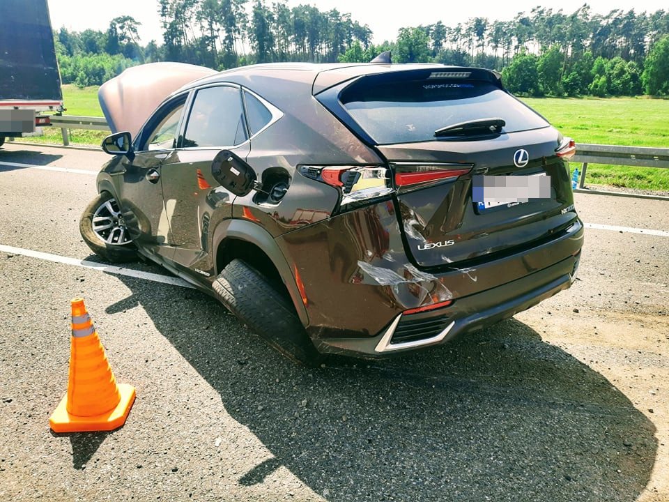 Strażacy zastali rozbitego lexusa blokującego pas ruchu, uszkodzoną barierę energochłonną i zanieczyszczoną jezdnię. Kierowca znajdował się już poza autem, był przytomny, kontaktowy z niewielką raną głowy.