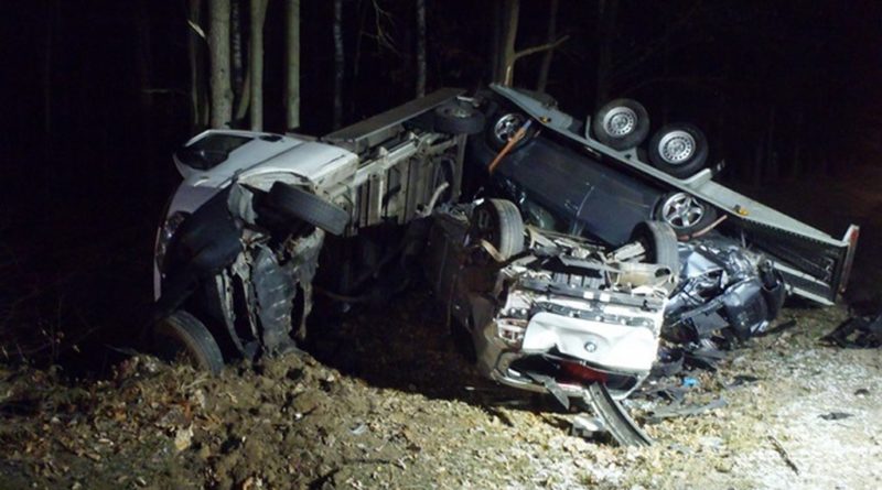 Kilkanaście minut po godzinie osiemnastej w czwartek 24 stycznia br. doszło do kolejnego w tym roku zderzenia pojazdów na skrzyżowaniu drogi wojewódzkiej z powiatową za miejscowością Kujan kierunek Więcbork. To również kolejne niezachowanie ostrożności i nie dostosowanie się do obowiązującego na tym skrzyżowaniu oznakowania drogowego. W zdarzeniu uczestniczyły dwa samochody a uszkodzeniu uległy aż cztery. Jeden z pojazdów to pojazd autolaweta z lawetą ciągnioną, na którym były przewożone dwa pojazdy osobowe. W wyniku uderzenia a następnie kolejno następujących po sobie uderzeń wtórnych doszło do całkowitego zniszczenia wszystkich uczestniczących pojazdów. Łącznie w pojazdach podróżowały trzy osoby, z czego jednej osobie udzielono pierwszej pomocy medycznej, a po przebadaniu przez zespół PRM ostatecznie pozostała ona w miejscu zdarzenia.