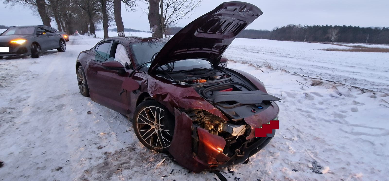 Pojazd marki Porsche znajdował się na drodze, natomiast samochód marki Seat na poboczu drogi.