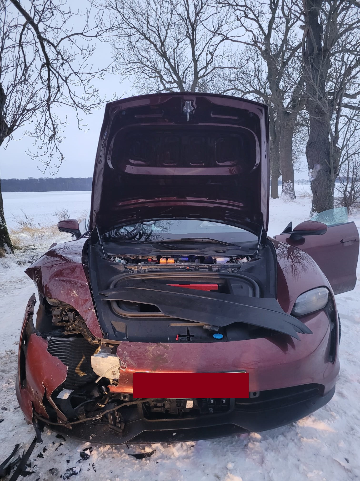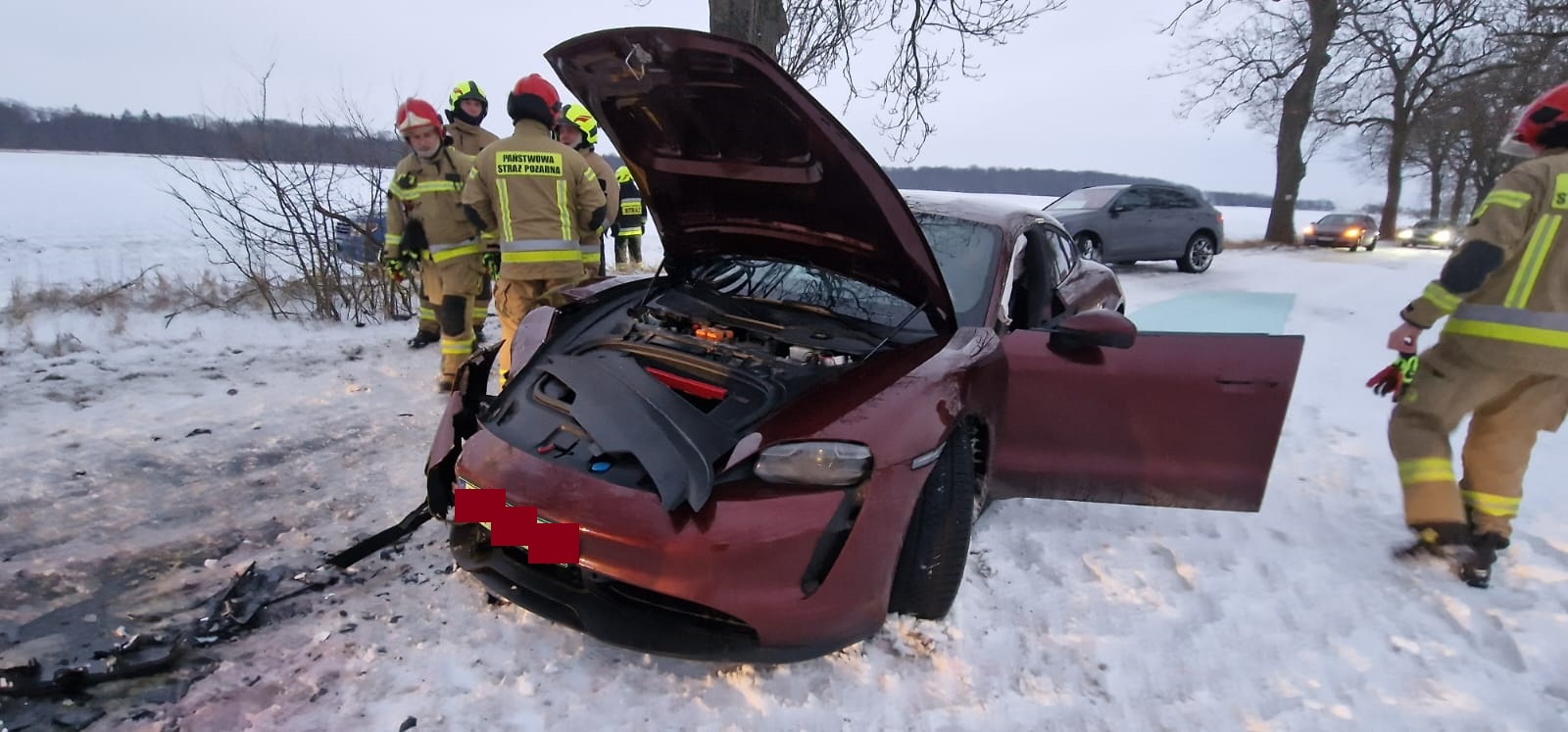 Po dojeździe na miejsce zdarzenia strażacy zastali dwa samochody osobowe (Porsche i Seat), które zderzyły się ze sobą .