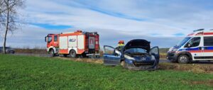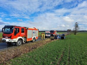 10 lutego 2024 o godz. 11.53 Stanowisko Kierowania Komendanta Powiatowego Państwowej Straży Pożarnej w Śremie przyjęło zgłoszenie o zdarzeniu drogowym na drodze powiatowej w miejscowości Gaj gmina Śrem.