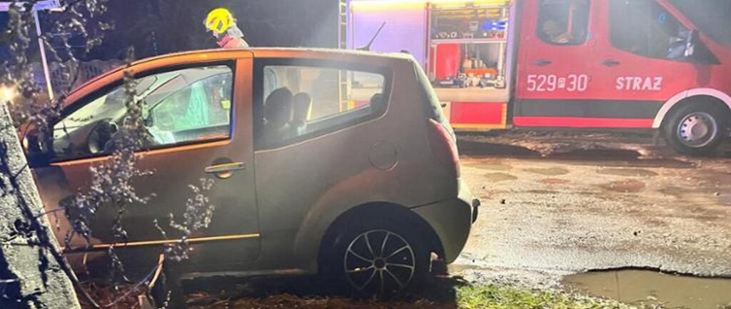 Na miejscu zdarzenia stwierdzono że samochód Citroen C2 uderzył w słup w słup oświetleniowy a w pobliżu nie było uczestników kolizji.
