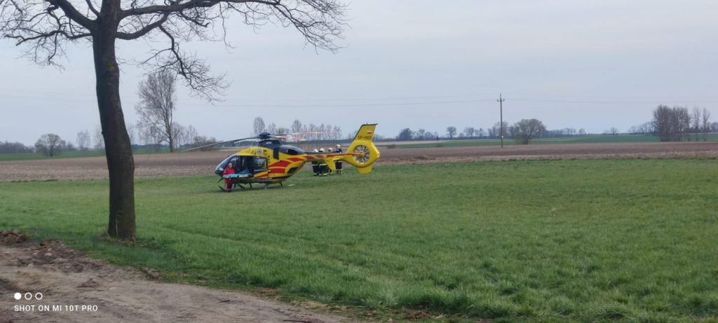 Działania straży pożarnej polegały na zabezpieczeniu miejsca zdarzenia, zabezpieczenia lądowania LPR oraz pomocy w przetransportowaniu osoby poszkodowanej do śmigłowca.