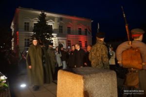 O godzinie 17.00 rozpoczęły się uroczystości patriotyczne z udziałem Kompani Honorowej Batalionu Logistycznego 17 Brygady Zmechanizowanej im. gen. broni Dowbor- Muśnickiego z Międzyrzecza. Delegacje władz samorządowych , przedstawiciele lokalnych organizacji , szkół złożyli symboliczne wiązanki kwiatów.
