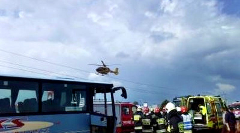 Mogło dojść do tragedii ! Ciężarówka wioząca 17 ton piasku, zderzyła się z autobusem PKS. Wśród rannych dzieci. Na miejscu śmigłowiec LPR.