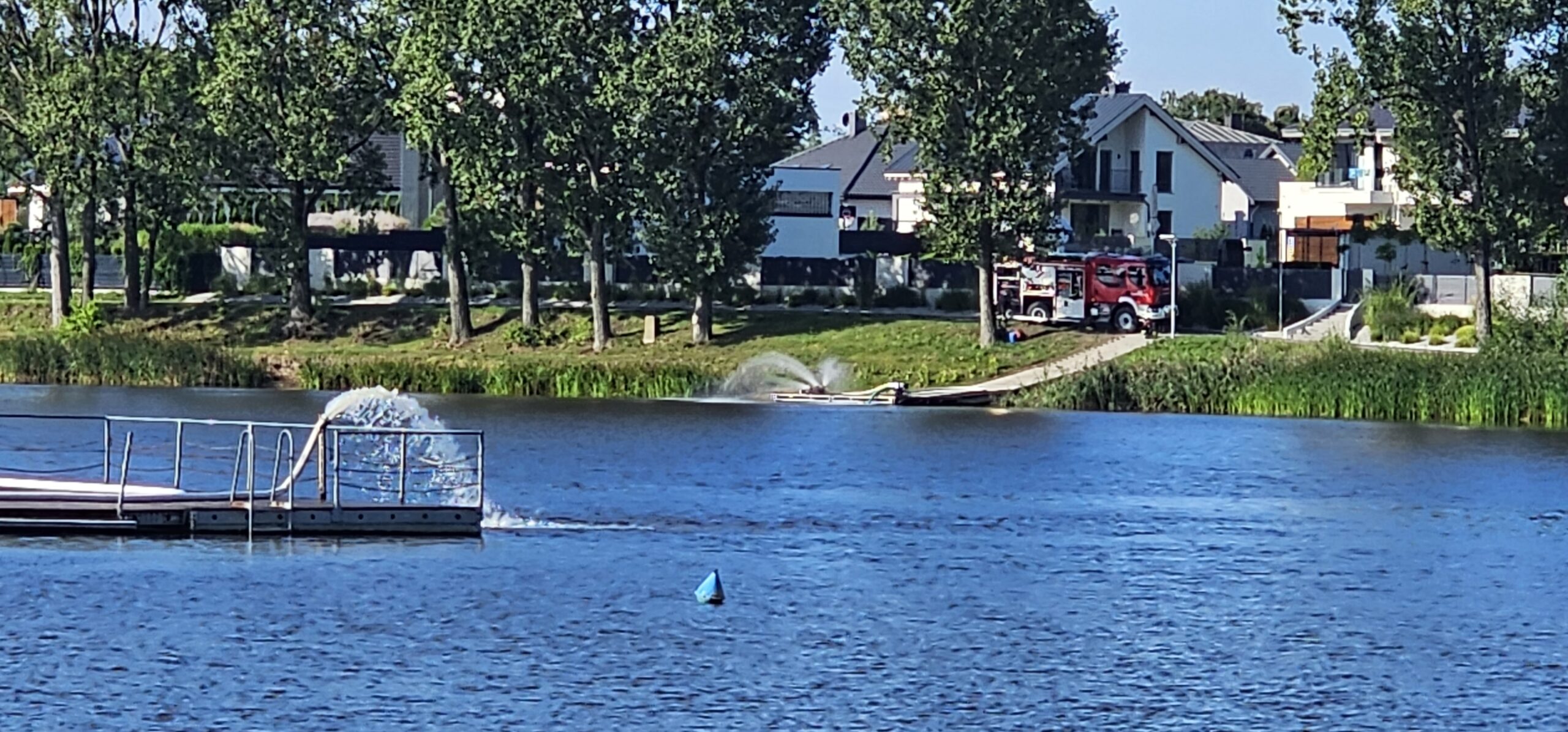 Przybyli na miejsce strażacy wyłowili śnięte ryby ze zbiornika, a następnie dokonali pomiaru tlenu w wodzie, który wskazał, że poziom natlenienia jest bardzo niski. Podjęto decyzję o próbie dotlenienia zbiornika, aby zapobiec padaniu kolejnych ryb.