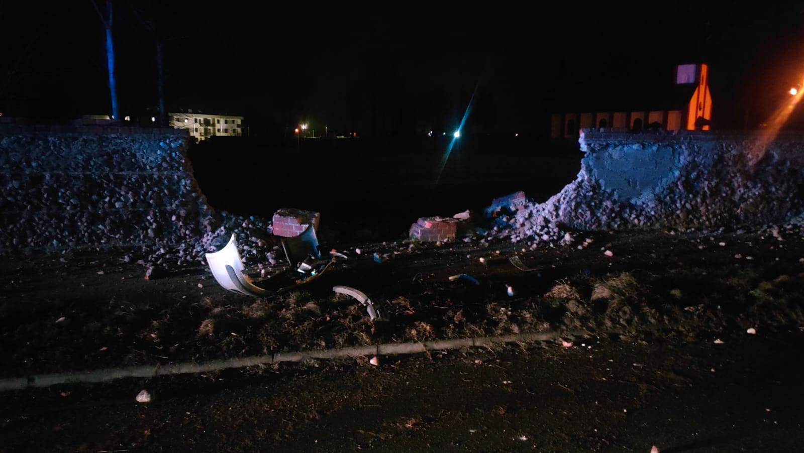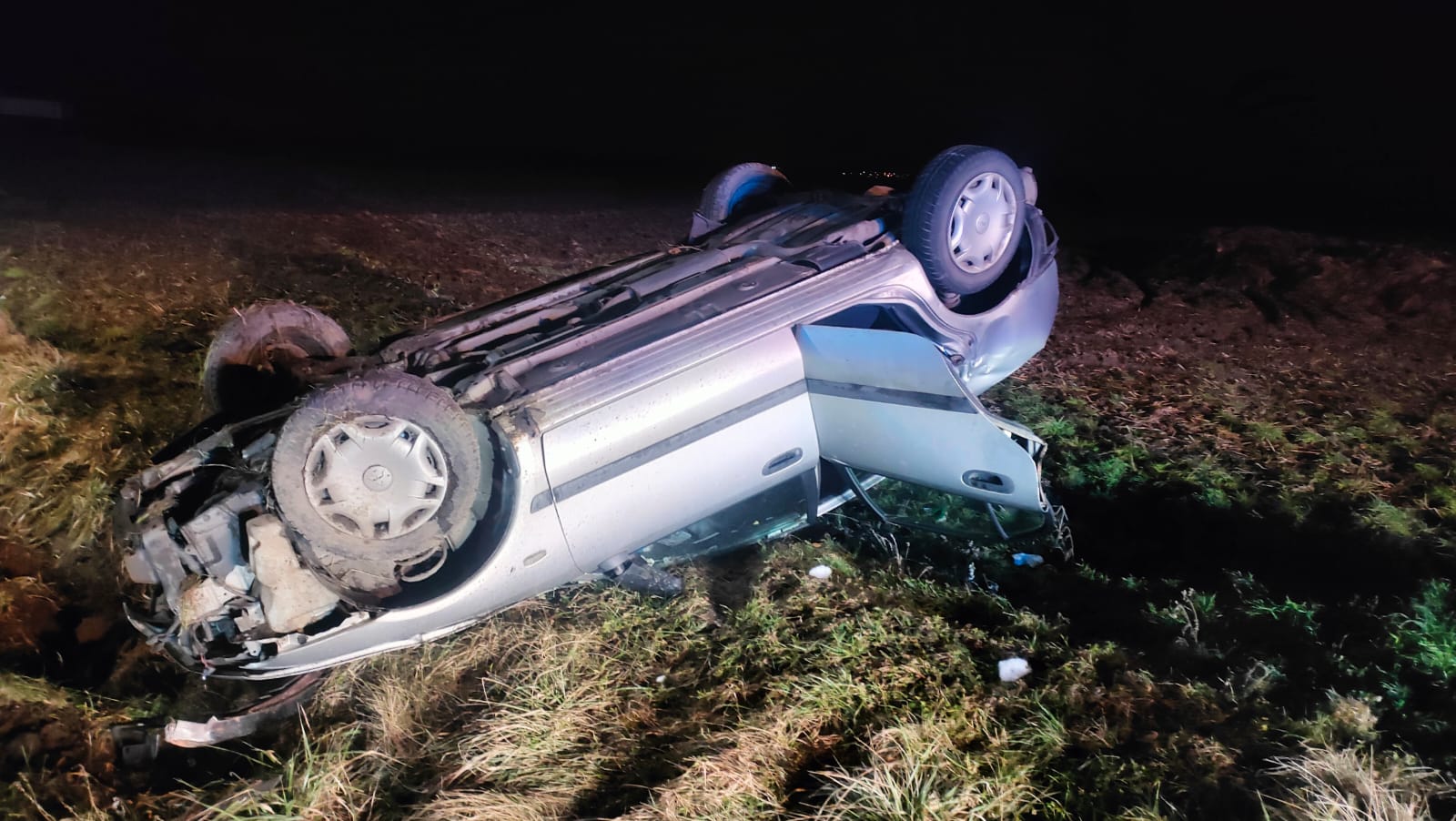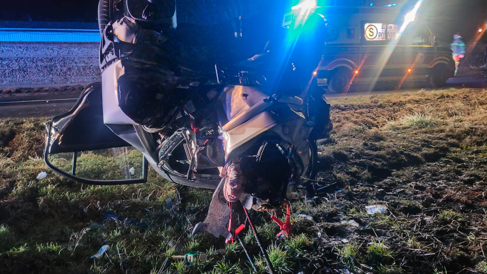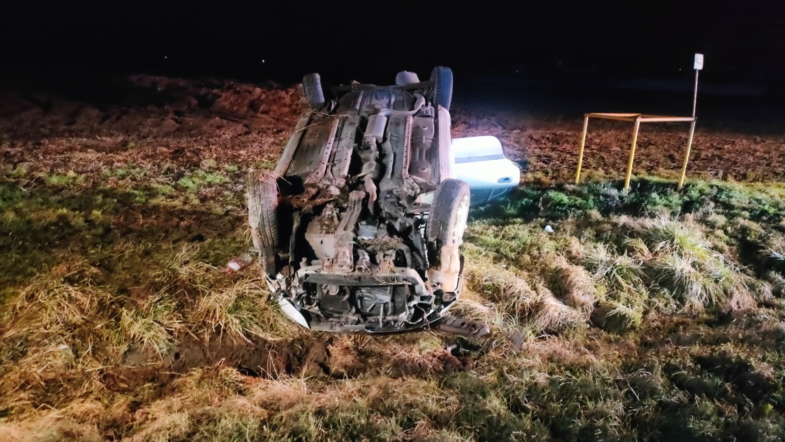 Do drugiego zdarzenia doszło o 21:15. Na drodze DP4803 w miejscowości Kłoda Mitsubishi Carisma, którym podróżował 22-latek oraz o kilka lat starszy mężczyzna, uderzył w mur i dachował na pobliskim polu. Obie osoby zostały uwięzione, dlatego przy użyciu sprzętu hydraulicznego wykonano dostęp do poszkodowanych. Obie osoby wymagały hospitalizacji.