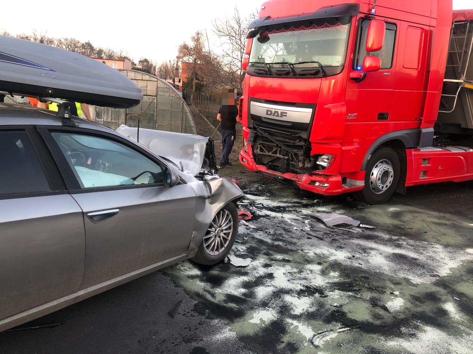 Niebezpieczne zderzenie osobówki z ciężarówką