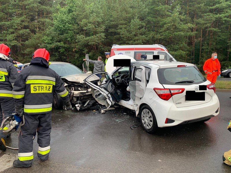 Dyżurny SKKP do działań zadysponował dwa zastępy straży pożarnej z JRG 2 oraz jeden zastęp ratownictwa technicznego z JRG 1. Na miejscu zdarzenia zastano rozbite dwa samochody osobowe. Droga była całkowicie zablokowana. W wypadku udział brały osoby kierujące pojazdami i pasażer. Działania strażaków polegały na zabezpieczeniu miejsca zdarzenia, wykonaniu dostępu do zakleszczonego kierowcy pojazdu, udzieleniu kwalifikowanej pierwszej pomocy poszkodowanym. Kierowca i pasażer jednego z pojazdów po przebadaniu przez Zespół Ratownictwa Medycznego zostali zabrani do Szpitala Specjalistycznego w Pile. Kierowca drugiego samochodu opuścił swoje auto samodzielnie, nie wymagał pomocy medycznej. Na czas prowadzonych działań ruch drogowy został wstrzymany.