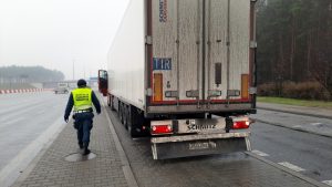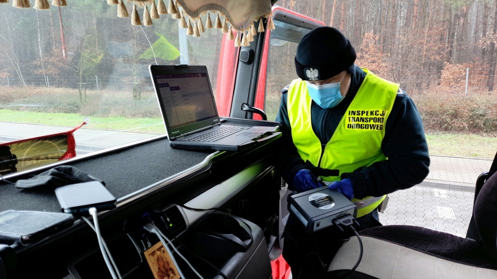 21 grudnia, na punkcie kontroli drogowej w Żdżarach na autostradzie A2, konińscy inspektorzy zatrzymali należący do przewoźnika z Białorusi pojazd członowy, którym wykonywano międzynarodowy transport drogowy rzeczy do Polski. Podczas wjazdu zestawu na parking z układu hamulcowego słyszalny był dźwięk mogący sugerować usterkę. Inspektorzy dokonali analizy danych zapisanych w pamięci komputera pokładowego pojazdu. Użyli do tego specjalistycznego urządzenia diagnostycznego do określania błędów pojazdu. Na podstawie usterek i kontroli wizualnej inspektor z uprawnieniami diagnosty ustalił, że układ hamulcowy na osi składowej naczepy był w stanie wskazującym na usterkę określaną jako niebezpieczną. Okazało się, że tarcza koła na trzeciej osi, po prawej stronie, była całkowicie skorodowana, a w jarzmie brak było klocka hamulcowego. Obecny podczas kontroli kierowca poinformował, że w ostatnim czasie pojazd przechodził w bazie firmy serwis układu hamulcowego i prawdopodobnie uczeń mechanik pominął w naprawie prawe koło naczepy. Szofer wyjaśnił też, że nikt z firmy nie sprawdzał efektu naprawy pojazdu ani sił hamowania kół. Inspektorzy wstrzymali dalszy przewóz, wydając zakaz jazdy. Kierowca został ukarany mandatem w wysokości 100 zł, a przedsiębiorstwo zostało zobowiązane do zapłacenia kaucji administracyjnej w wysokości 2000 zł na poczet wszczętego postępowania administracyjnego. Dowód rejestracyjny naczepy został zatrzymany do czasu naprawy układu hamulcowego. Zostanie wydany po pozytywnym przejściu badania technicznego.